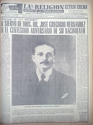 Periódico La Religión (Caracas) Año LXXV n°. 22.358 (24 oct.1964) junio 19, 2025julio 29, 2025 Massiel Pirela Dr. José Gregorio Hernández 1864-1919, El Médico de los Pobres, El Pasteur Americano, El Siervo de Dios Leer más