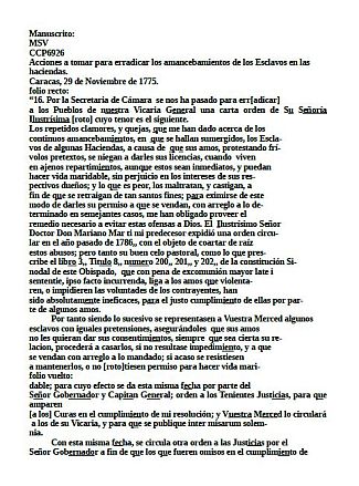 El Documento es una carta dirigida al senõr doctor Francisco Xavier Fuenmayor. Documento encabezado por el No. 16, según el