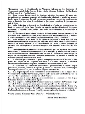 Expone una serie de once directrices que debe seguir el Comisionado de Venezuela con relación a los colaboradores ingleses y de Barbados, aliados del ejército patriota.
