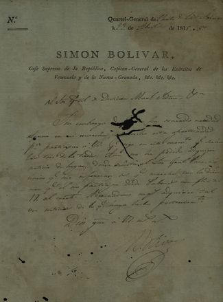 Materia: Manuscrito -- Simón Bolívar 1783-1830 -- Venezuela -- Cartas