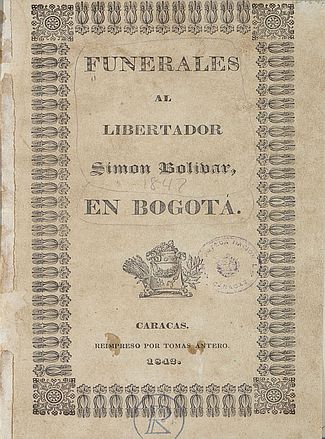 Título: Funerales al Libertador Simón Bolívar, en Bogotá.