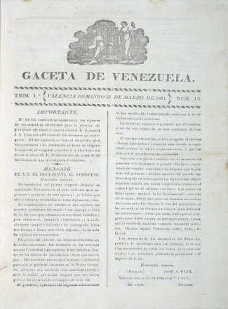 - Gaceta de Venezuela. Trimestre I nº 11 Valencia, 20 de marzo de 1831