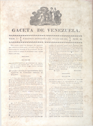 - Gaceta de Venezuela. Trimestre 2 nº 23 Valencia, 12 de junio de 1831