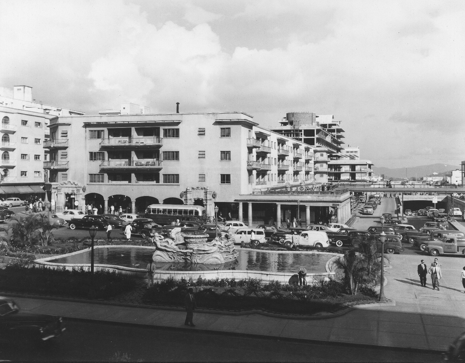 Se observa la Plaza O’Leary y vista parcial de la Urbanización El Silencio, calles, autómoviles, gente caminando por los alrededores y construcción de las Torres del Centro Simón Bolívar.