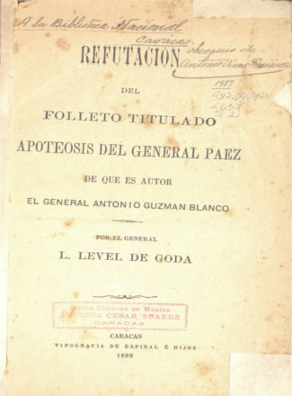 Folleto Refutación del folleto titulado Apoteosis del general Páez, de que es autor el general Antonio Guzmán Blanco octubre 22, 2025 Massiel Pirela El Catire Páez, Expresidente, Prócer de la Independencia Leer más